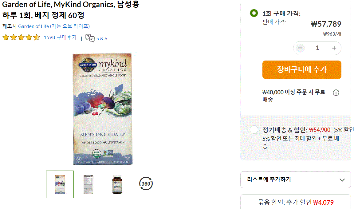 2. 마이카인드, 유기농 식물성 비타민, 남성용