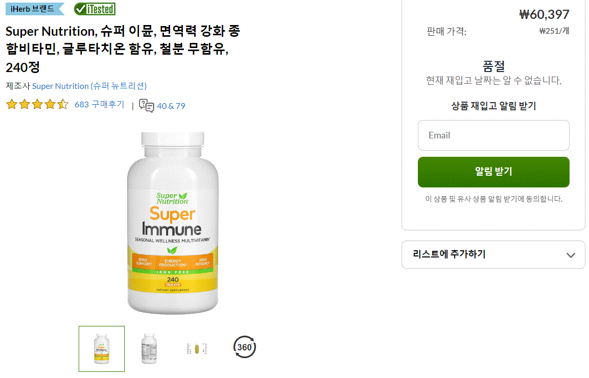 4. 슈퍼 뉴트리션, 슈퍼 이뮨, 면역력 강화 종합비타민