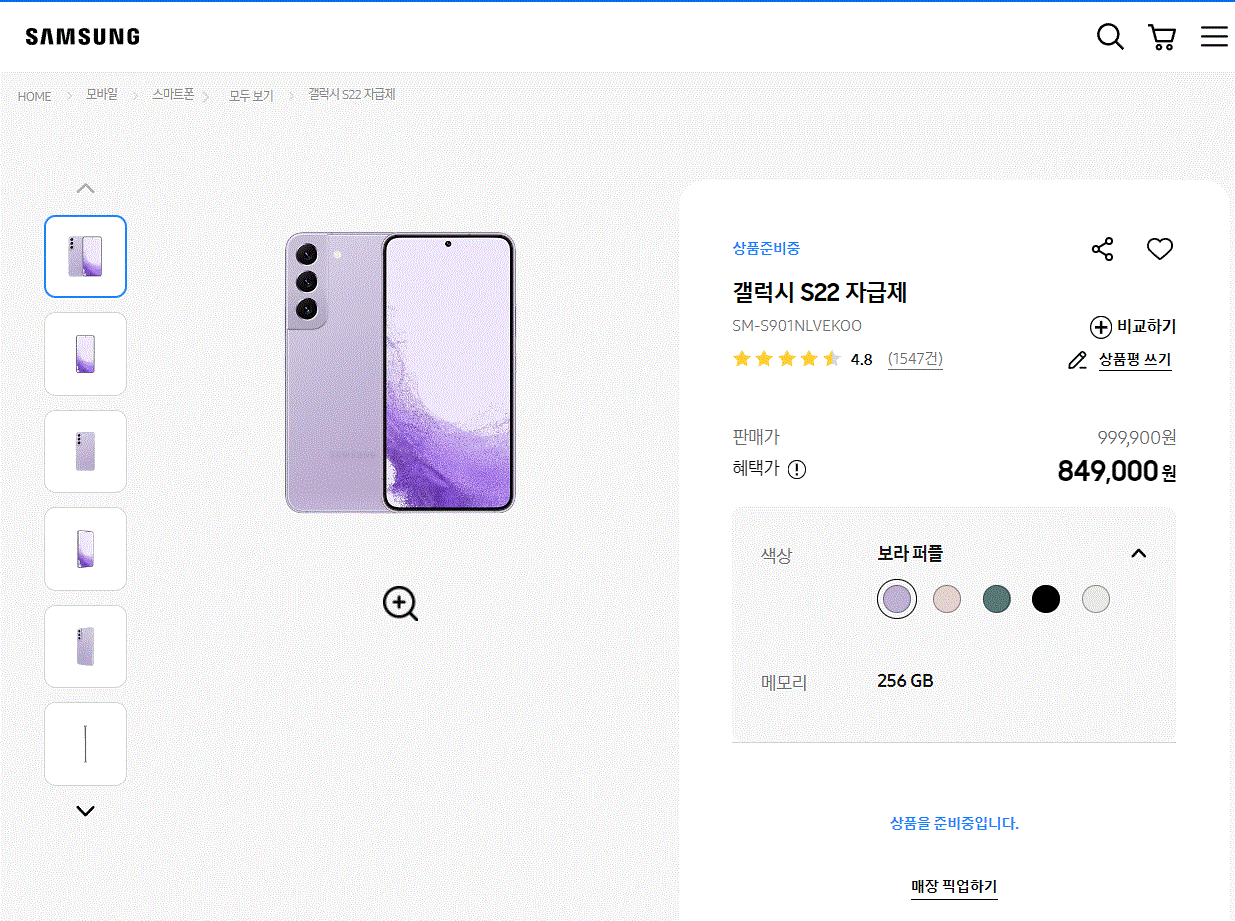 삼성전자 온라인 매장 공식홈페이지 참고