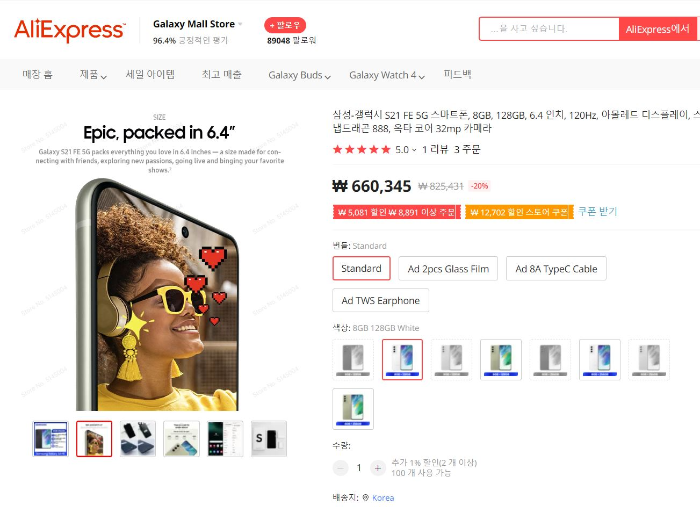 현재 23년도 1월 기준으로 알리익스프레스에서 삼성 갤럭시 S21의 최저가격은 660,345원입니다.
